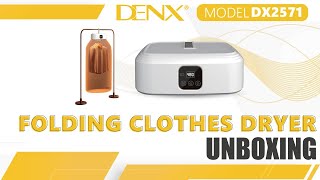 مجفف ملابس كهربائي محمول من دينكس، بقدرة 600 واط، تصميم قابل للطي، مزود بجهاز تحكم عن بعد، مثالي لتجفيف الملابس بسرعة في المساحات الصغيرة.